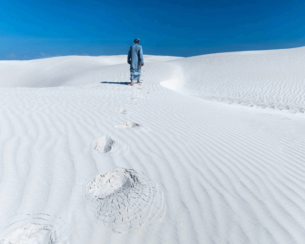 الرمال البيضاء أو المعروفة أيضاً بالكثبان السكرية، على بُعد 400 كيلومتر جنوب العاصمة العمانية مسقط والتي تقع بين منطقة الخُلوف ومنطقة فلم بولاية محوت، من المشاهد المتفردة بمحافظة الوسطى بسلطنة عُمان.