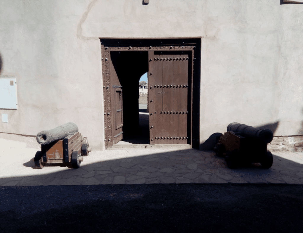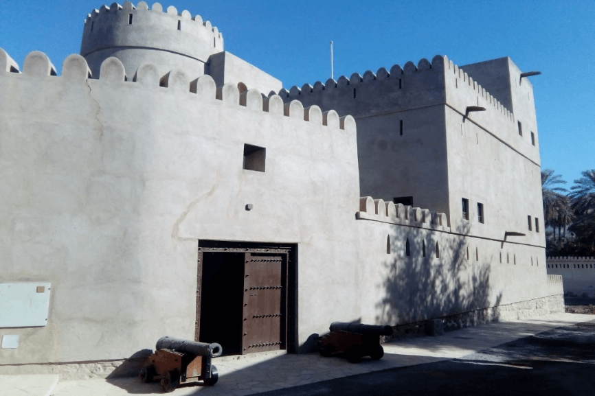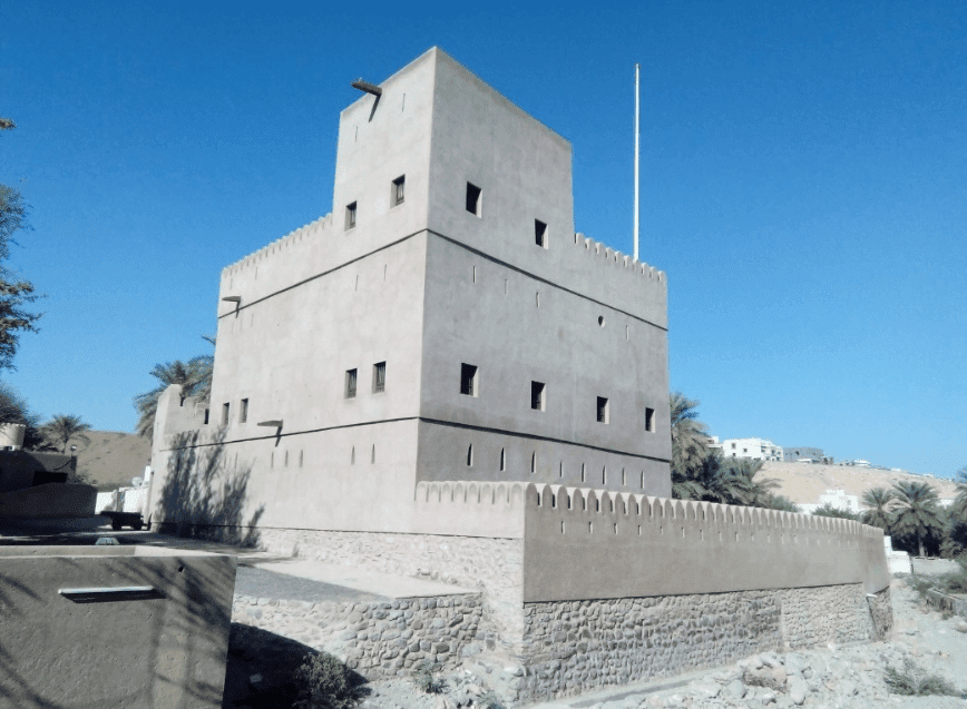 يبتعد الحصن عن جامع السلطان قابوس الأكبر (بحي العذيبة) بحوالي عشرة كيلومترات، فيما يبتعد عن مطار مسقط الدولي بحوالي خمسة وعشرين كيلو مترا، كما أنه يبتعد عن منطقة مطرح السياحية ما يقارب ثمانية وثلاثين كيلو مترا.