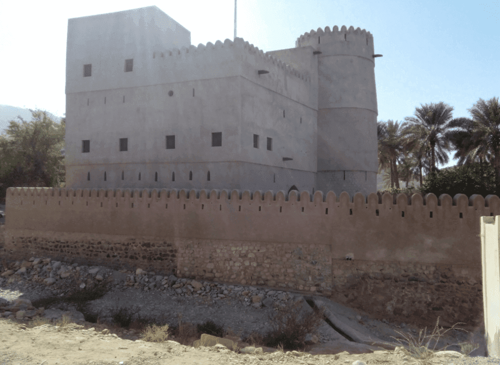 يُنسب الحصن إلى السيدة “ثريا بنت محمد بن عزان البوسعيدية” التي يرجع إليها الفضل في إنشائه والعيش فيه، بحلول القرن الثاني عشر الهجري/ الثامن عشر الميلادي، فيما كان يُسمّى ولا يزال بالبيت الكبير لأنه من أكبر المباني المعمارية بالمنطقة المشيد بها الحصن، وقد جُري على الحصن مجموعة من الترميمات المعمارية التي قامت بعملها وزارة التراث القومي والثقافة بالسلطنة وذلك في عام (1991م)، في خطوة رشيدة للحفاظ على المقدرات التراثية وحمايتها من عوامل التهدم والاندثار، ثم أجُري عليه تعديل ثانٍ بحلول عام (2010)م نتيجة انهيار أجزاء من البرج الشمالي الغربي جراء سقوط الأمطار الكثيفة عليه.
