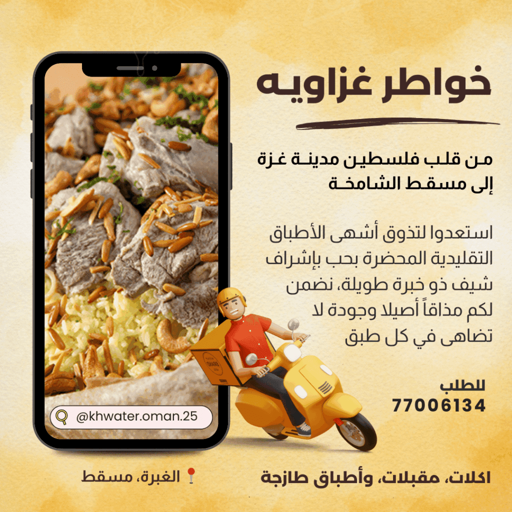 بكل حب وشغف نقدم لكم تجربة فريدة من قلب المطبخ الفلسطيني والشامي نعلن بكل فخر عن افتتاح المطعم البيتي، حيث تجتمع نكهات غزة العريقة وأصالة المطبخ الشامي في أجواء دافئة تحمل روح الوطن.